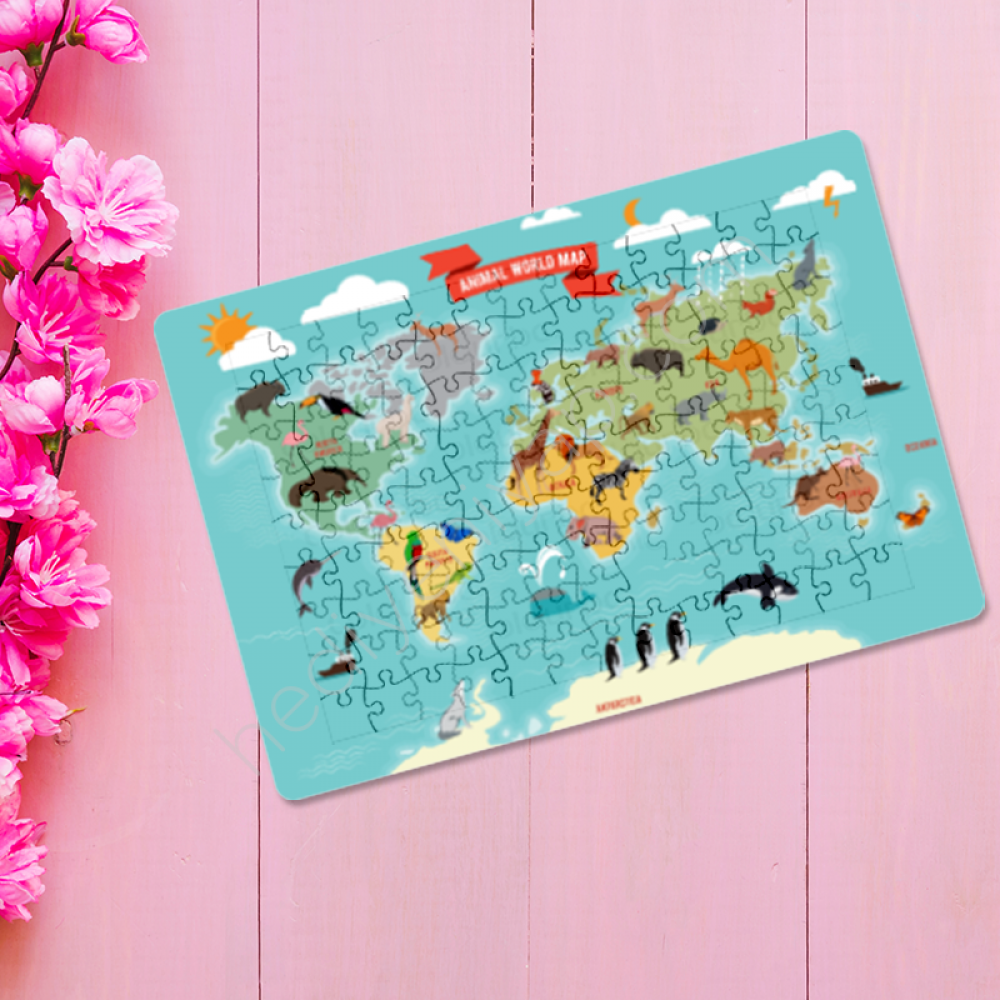 Dünya Haritası Hayvan Temalı 130 Parça Puzzle