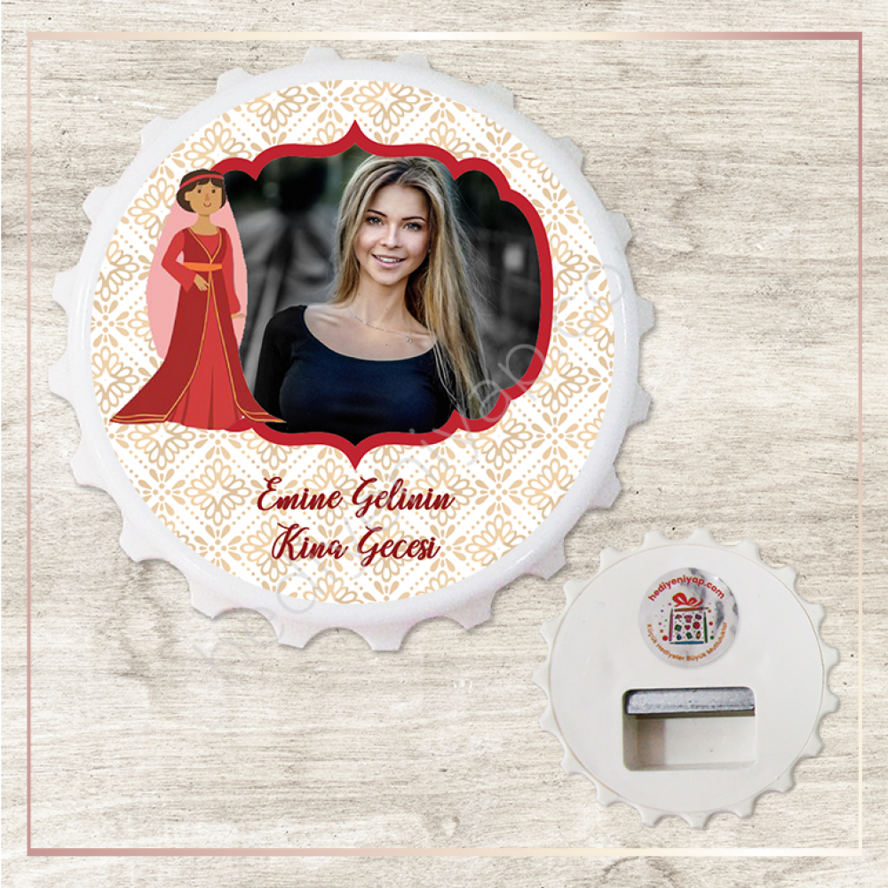 Duvaklı Gelin Temalı Kına Hatırası Kapak Şekilli Açacak Magnet