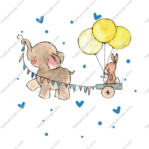 Fil ve Balonlu Tavşan Temalı Kapak Şekilli Açacak Magnet