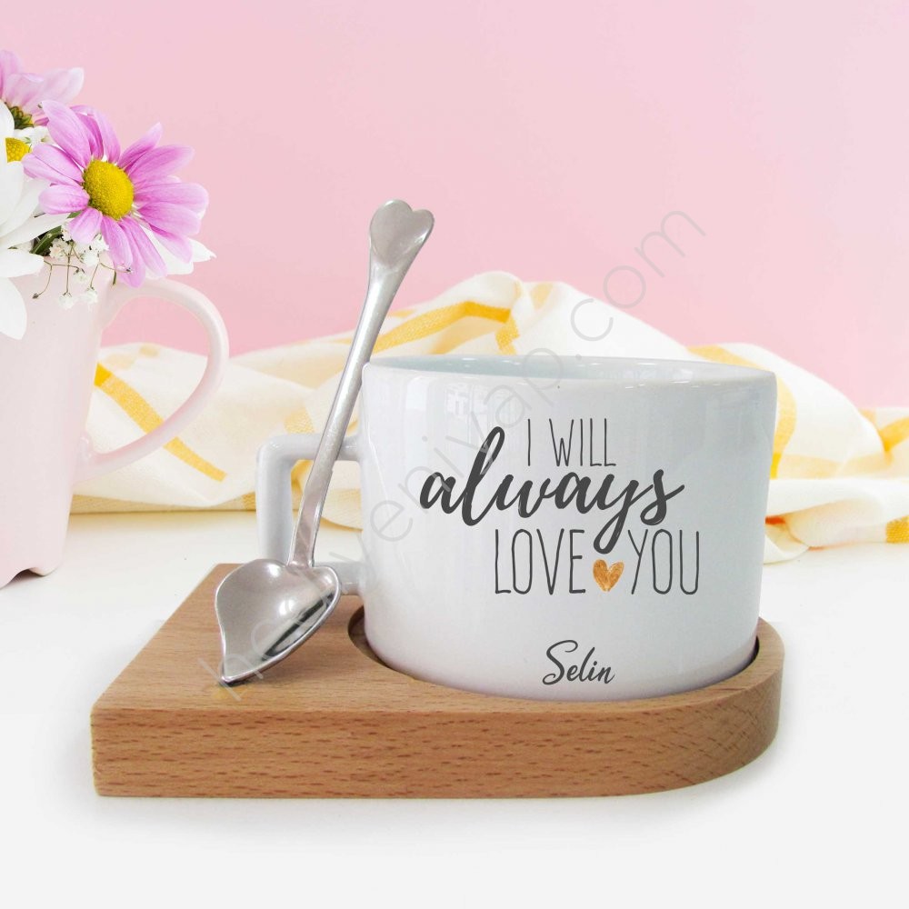 I Will Always Love You Temalı Ahşap Tepsili Kaşıklı Fincan