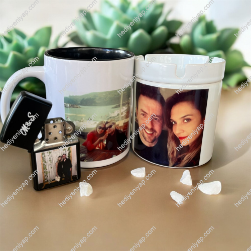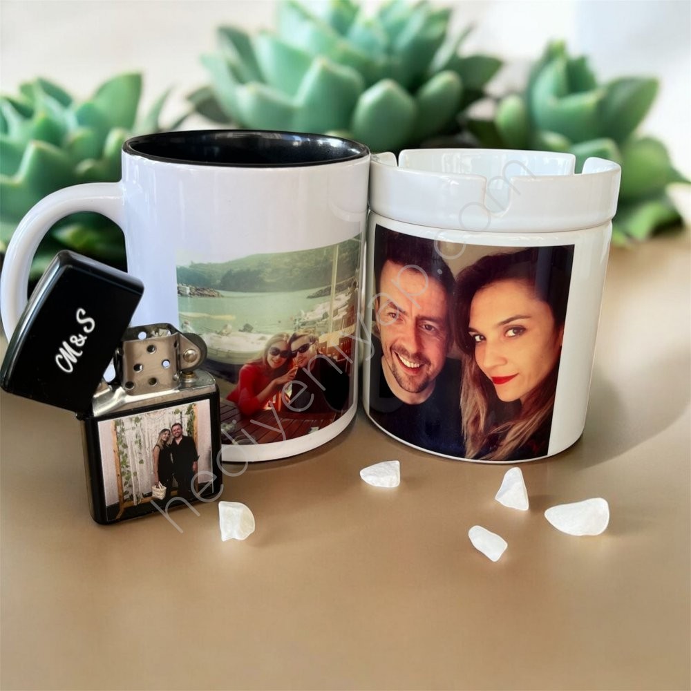 Kişiye Özel Fotoğraf Baskılı Çakmak + Kupa Bardak + Küllük