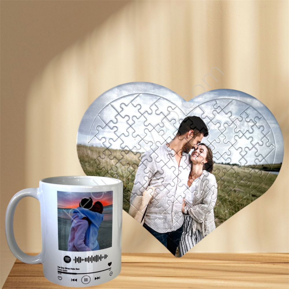Kişiye Özel Resimli Kalp Puzzle + Kupa Bardak