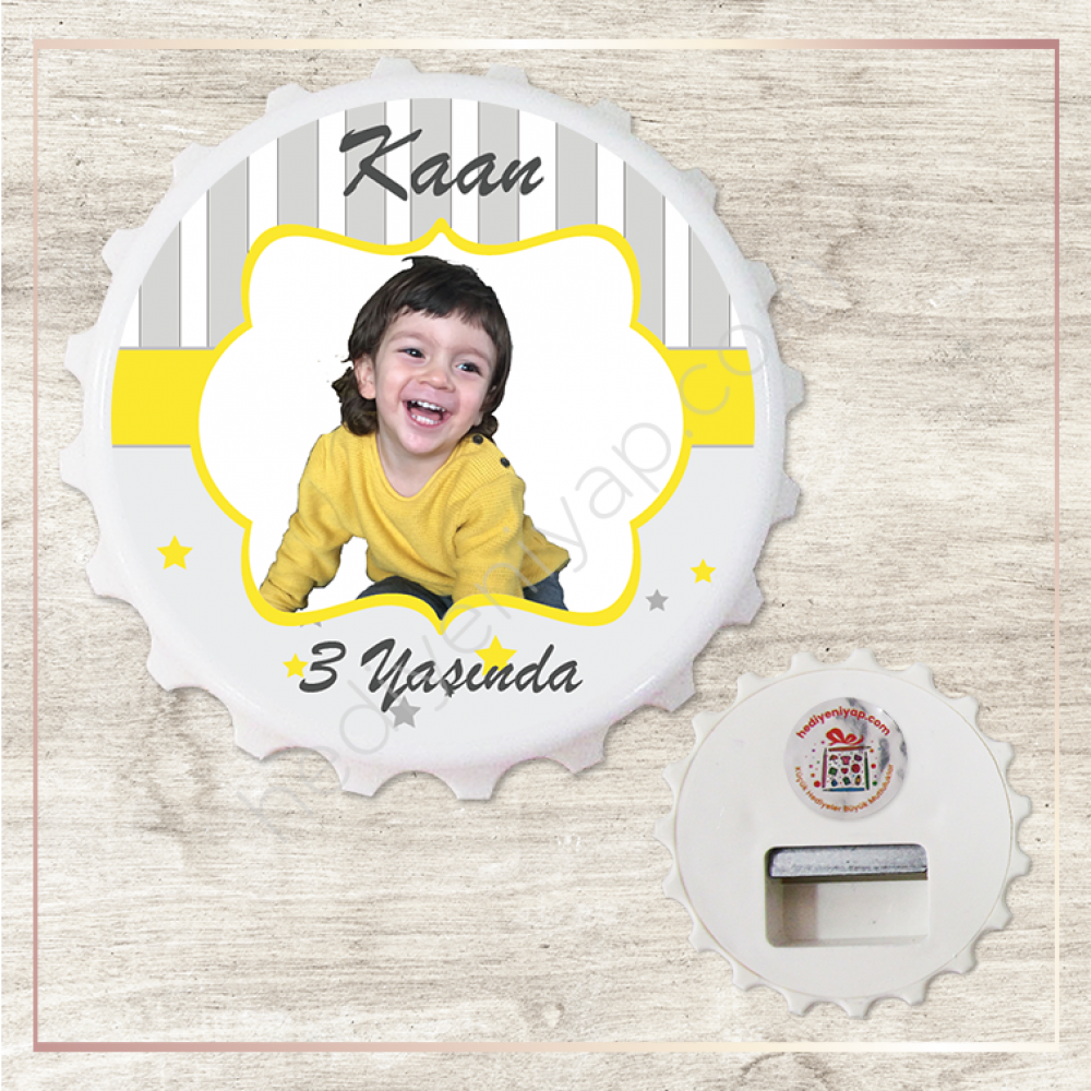 Sarı ve Gri Temalı Doğum Günü Kapak Şekilli Açacak Magnet