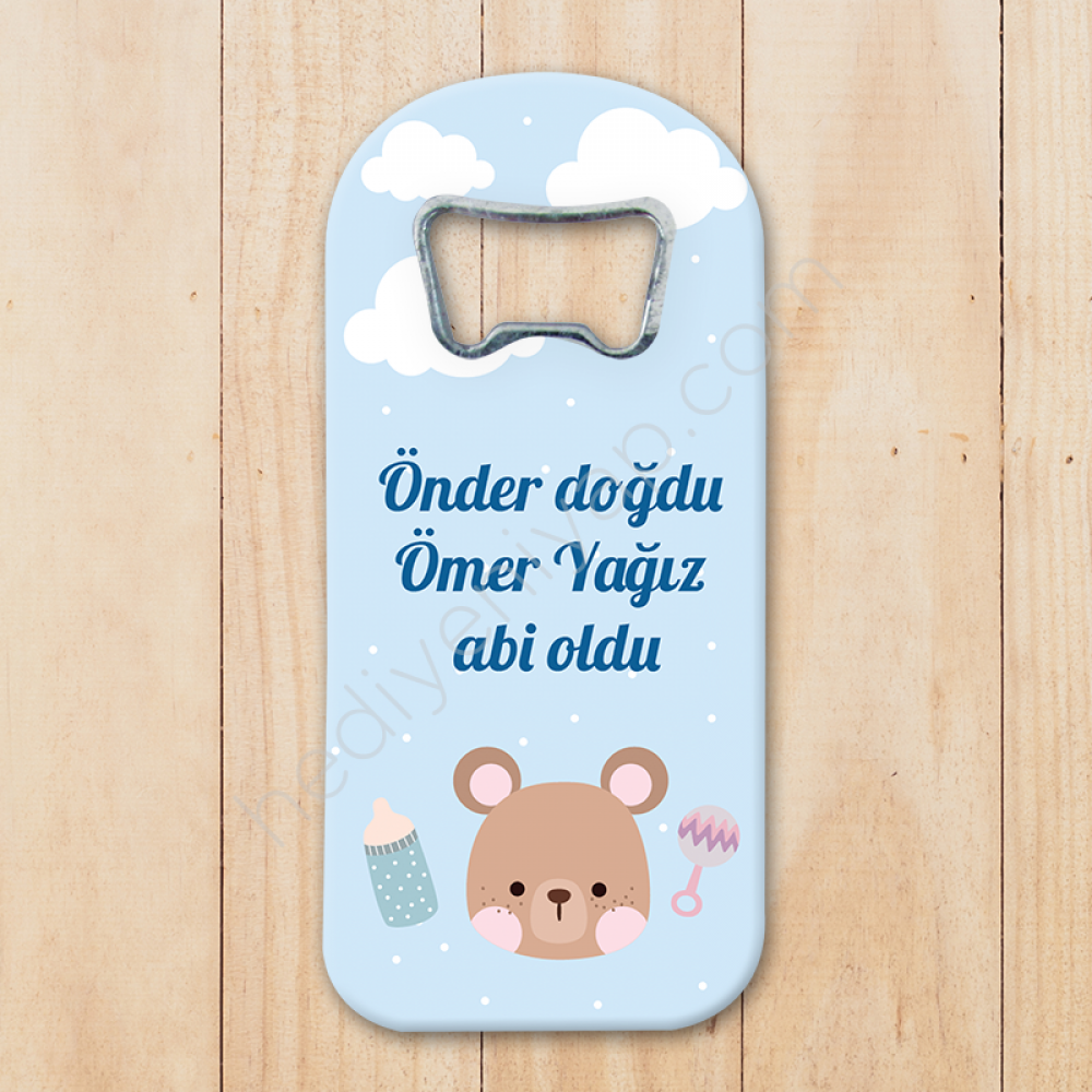 Hem şişe açacağı hem de buzdolabı süsü olarak kullanılabilen açacaklı magnettir.